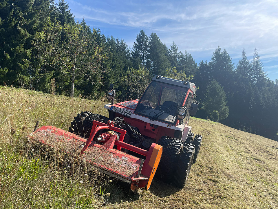 Wir haben mit unserem Flächenmulcher die Möglichkeit, Flächen von 2,5 m. Breite zu mulchen. Der Mulcher eignet sich somit bestens um große Flächen, Wiesen, Wege, Plätze usw. zu bearbeiten. Durch den Front- oder Heckanbau sowie die hydr. Seitenverschiebung ist dieser sehr vielseitig einsetzbar.